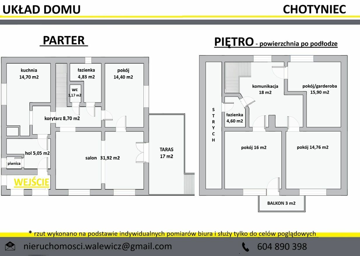 Całość jest w bardzo dobrym stanie technicznym. Powierzchnia domu to ok. 140 m², podane na podstawie obmiaru z natury.